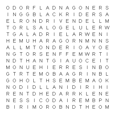 | LOTR I think I enjoyed the wordsearch more than the movie. Hehe! | | posted: 10/12/2004 14:37 | Reply | PM | Edit | IP |